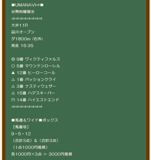 この日の無料予想は大井11Rの品川OP
