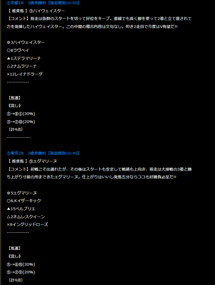 両レースとも選定した軸馬が1着